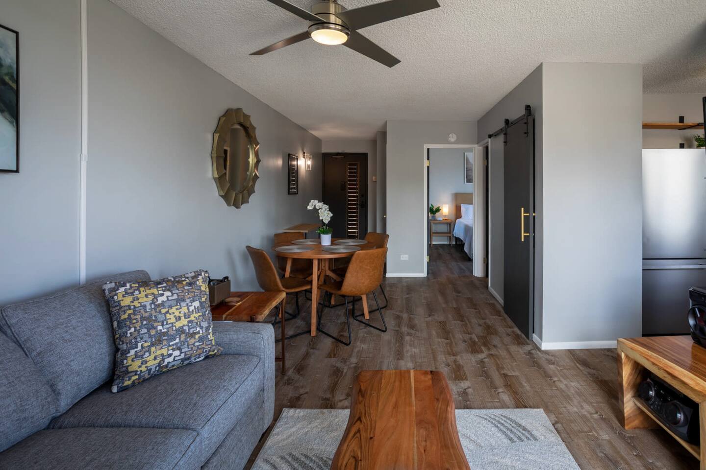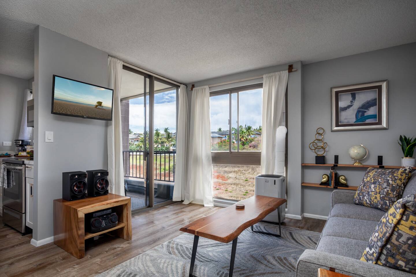 The Living Space 6th Floor 1 bedroom, one bath condo with view of West Maui Mountains Sleeps 4 Bedroom: King Bed with large smart TV. Log into your own accounts as you turn in for the night Living Room: Cable TV, WiFi stereo, queen sleeper sofa Washer/Dryer Full Kitchen Beach chairs, beach towels, umbrella, and cooler provided Private lanai with views of the West Maui Mountains and rainbows 1 Dedicated parking spot Pool and grill area